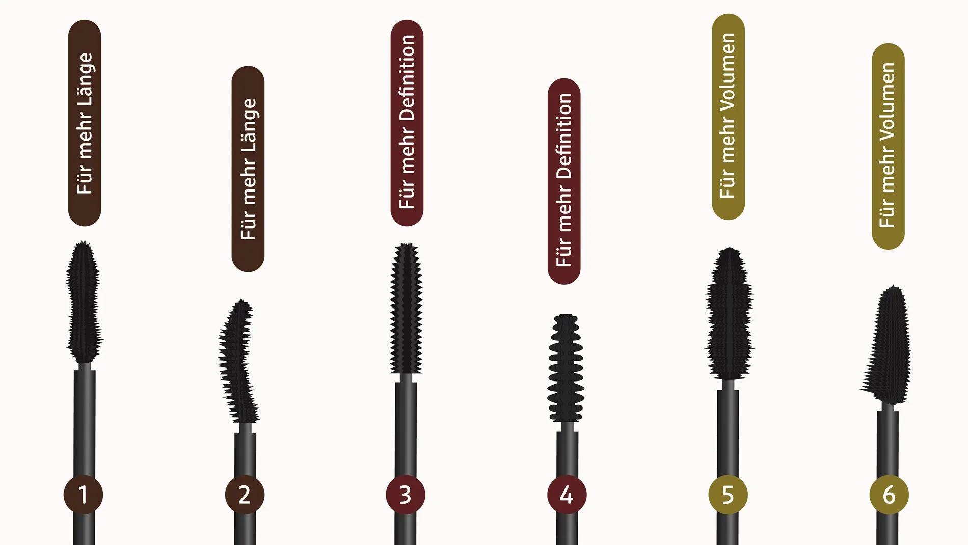 В зависимост от това дали искате да акцентирате на обем, дължина или дефиниция, си струва да обърнете внимание на подходящата формула и формата на четката.Обем: По-дебели, гъсти четки.