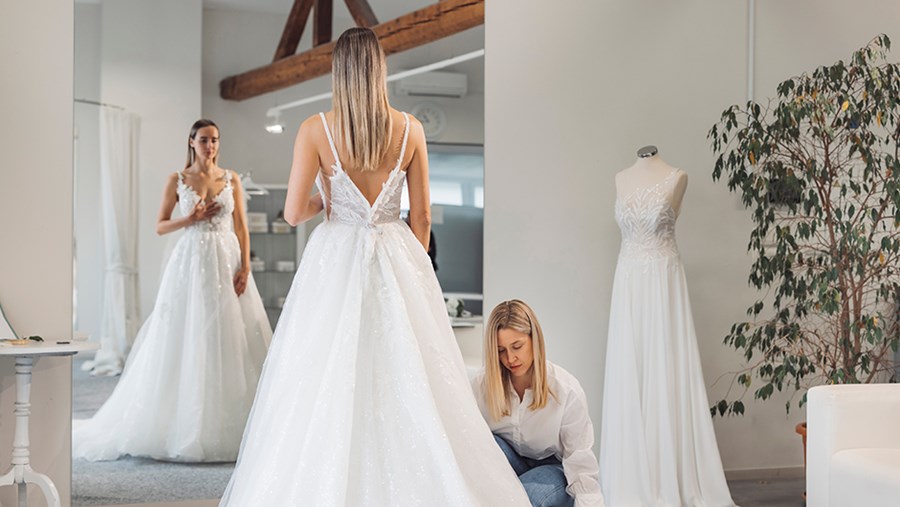 Не прекарвайте твърде много време в търсене на вдъхновения онлайн, а отидете в добър магазин за сватбени рокли и се отдайте изцяло на преживяването там.