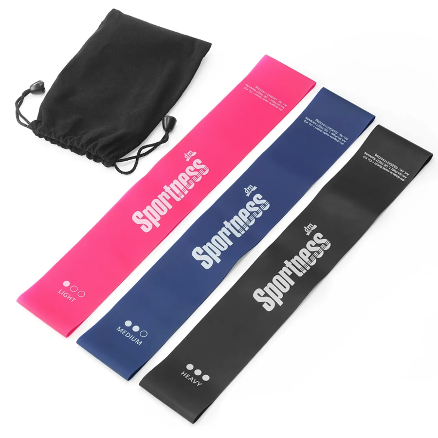 3 ластика с различна степен на съпротивление в практична чанта за съхранение